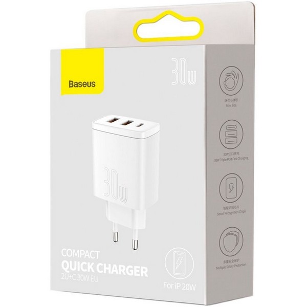 МЗП Baseus Compact Quick Charger 2U+C 30 W EU Білий (CCXJ-E02) (шт.)
