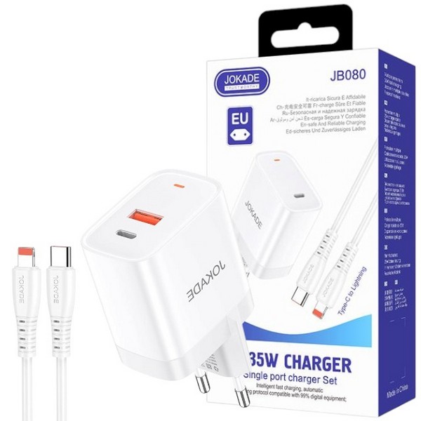 МЗП JOKADE JB100 PD30W+QC3.0 + кабель Type-C to Lightning білий (шт.)