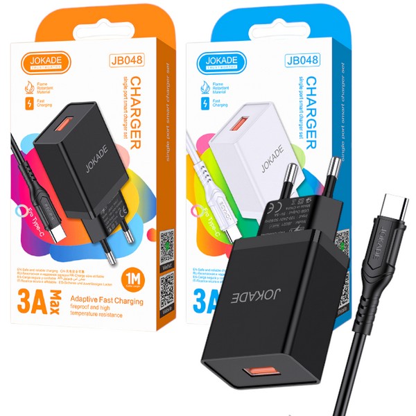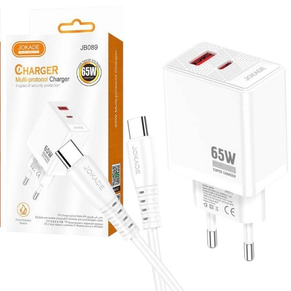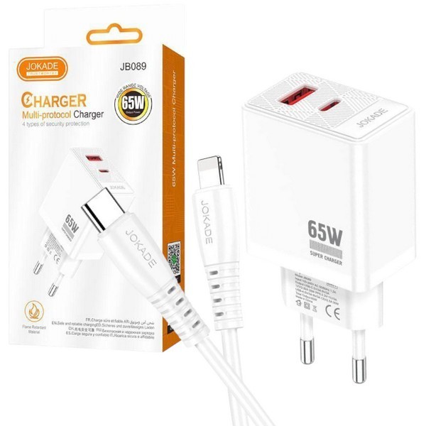 Пристрої побутові для заряджання акумуляторів мобільних телефонів JOKADE 090 тайпсі-лайтнінг білий (шт.)