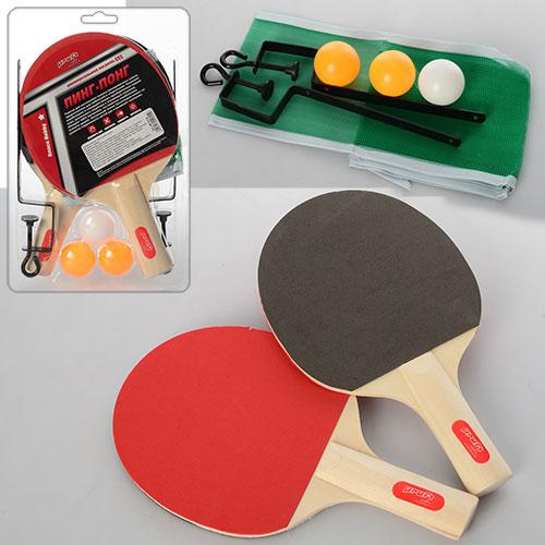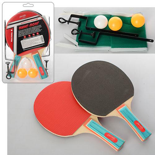 Ракетка MS 0214-1 (50шт) 2 шт, 25,5см,EVA, ручка дерев'яна,3 кульки40мм,сітка,в слюді,18-28-4,5см (шт.)