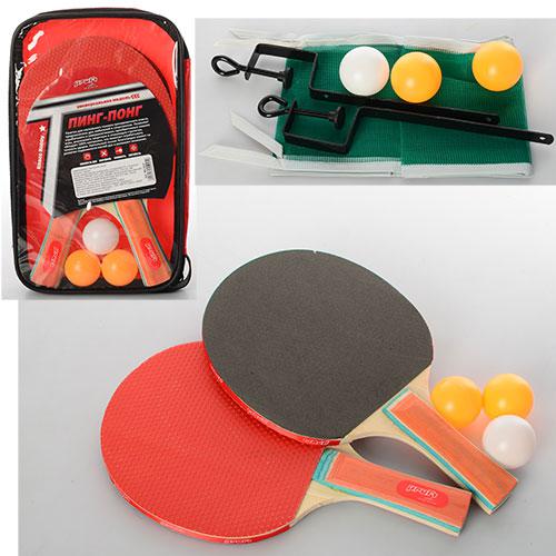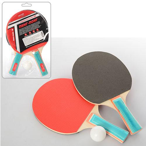 Ракетка MS 0224 (50шт) номер 2,2шт, EVA + гума, ручка дер, 3 безшовні кульки 40мм, сітка 122-12см, в (шт.)
