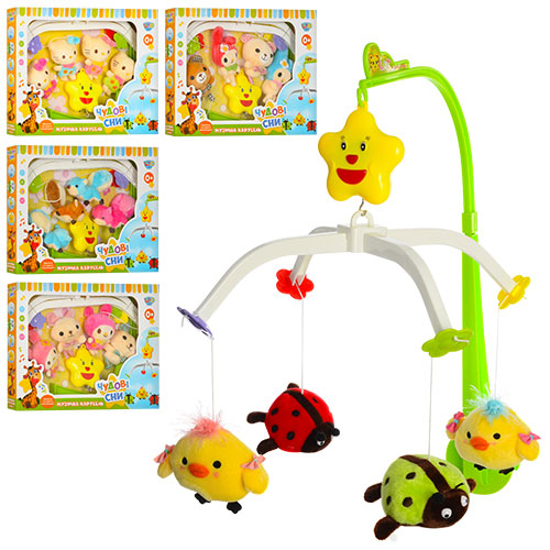 Карусель M 1178 U/R (24шт) на ліжечко, 4 види, плюш, муз, заводна, в кор-ці, 43-36-6см (шт.)