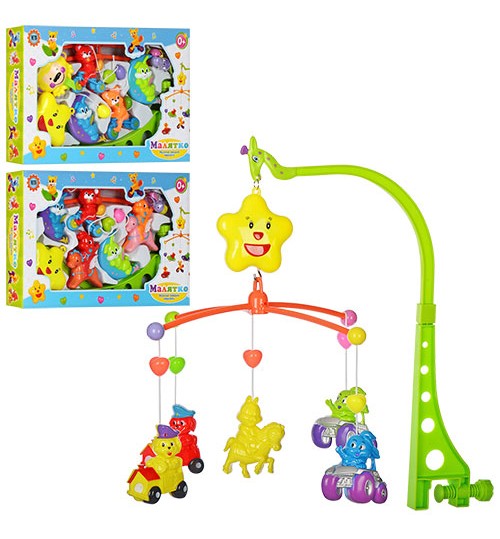Карусель M 1177 U/R (36шт) на ліжечко заводн., муз,підвіски-бряз.5шт,5 видів,в кор-ці, 32-25-5см (шт.)