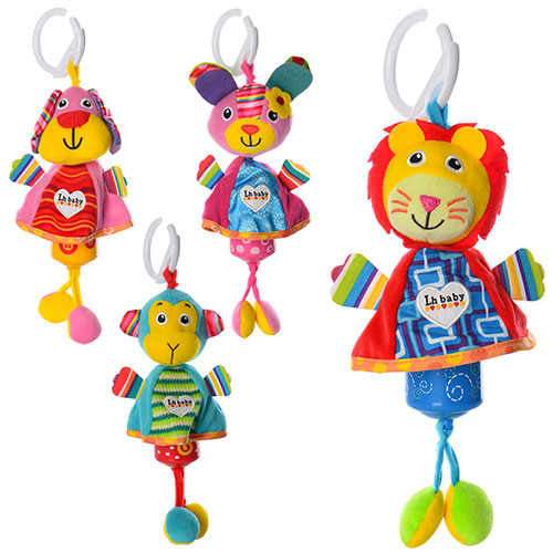 Підвіска на коляску E12599 (100шт) плюш, шурхіт, брязкальце, 4 види, в кульку, 16-6,5-5см (шт.)