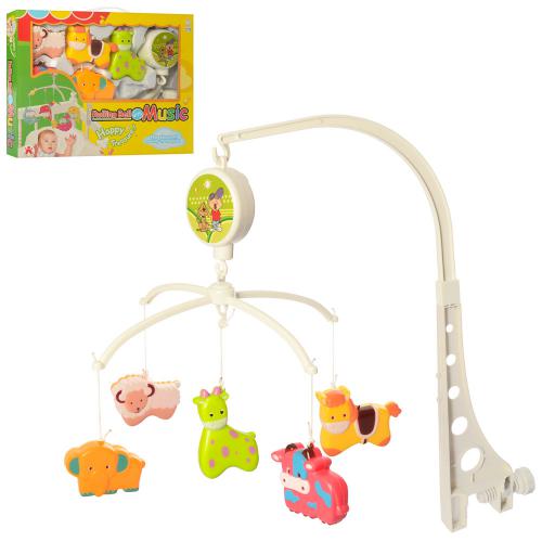 Карусель 5409 (36шт) на ліжечко, підвіски-тварини 5шт, муз-механіч, в кор-ці, 33-25-4см (шт.)