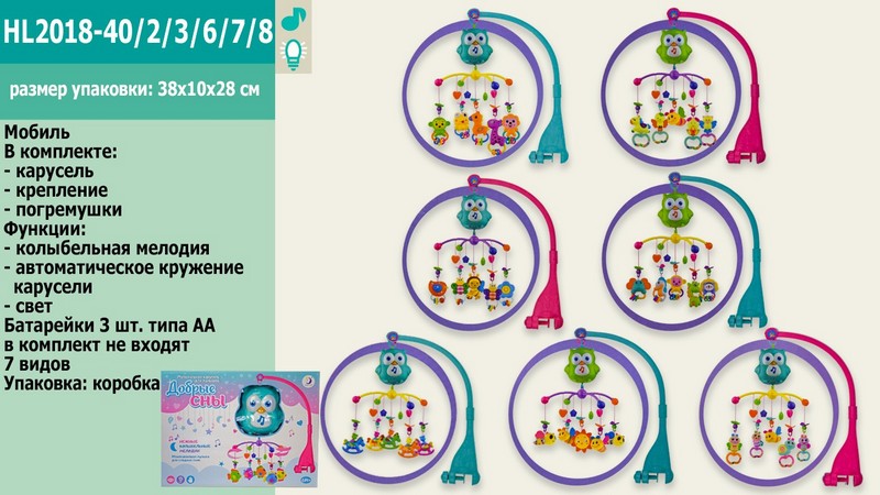 Мобіль муз. арт. HL2018-40/2/3/6/7/8/9R (18шт/3)батар.7 видів мікс, короб. 41*7,5*30см (шт.)
