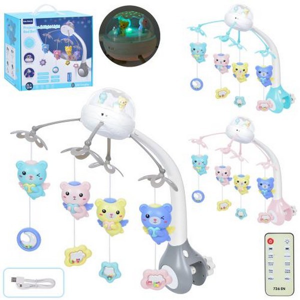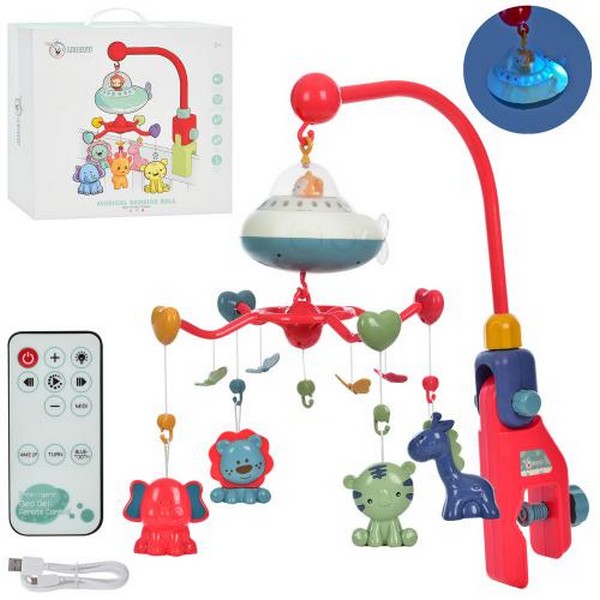 Карусель R5206A (6шт) на ліжечко, д/к (ІЧ),bluetooth,підвіски-тварини, муз, світло, в кор-ці, 34-32- (шт.)