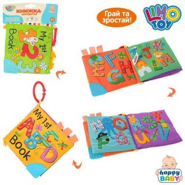 Книжка HB 0038 ABC (72шт) 13-11см, підвіска на коляску 26см, шарудить, пискавка, укр.текст, 3 види, (шт.)