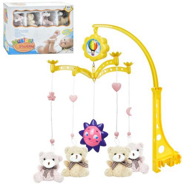 Карусель на кроватку XQT712 (18шт) заводна, підвіски 5шт (4шт-м'які, ведмедик), музика, в кор-ці, 32 (шт.)