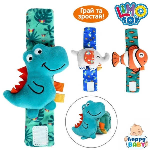 Брязкальце на руку HB 0108 ABC (90шт) браслет, 16см, застібка-липучка, брязкальце, плюш, 3 види(дино (шт)