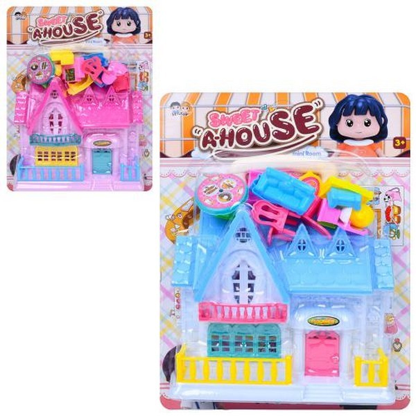 Разместить в 1 или 2 колонкиБудиночок 23010A-1 (60шт) 11,5-6-14см, меблі, фігурки, посуд, мікс кольорів, бліст, 21,5-27,5-6,5см (шт.)