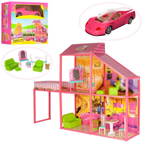 Будиночок 6981 (3шт) 105-80-23,5см,2 поверхи,4кімн,для ляльки29см,меблі,машинк45см,99дет,в кор,55,5- (шт.)