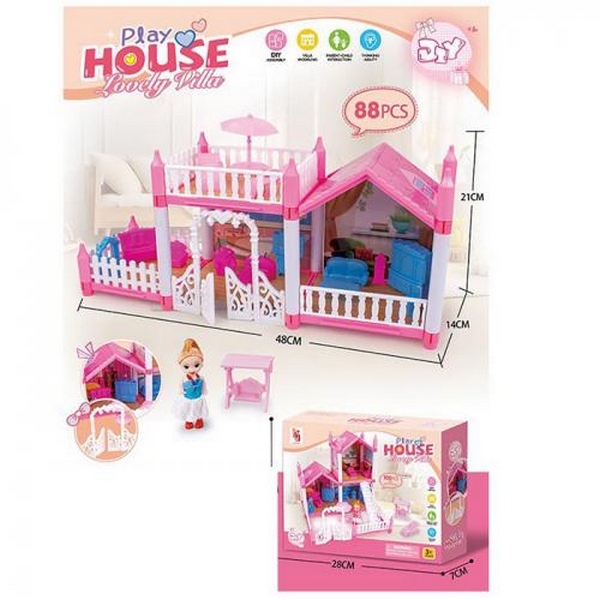 Будиночок DSJ588-16 (36шт) 48-14-в21см, меблі, лялька, 88 деталей, в кор-ці, 28-21-7см (шт.)