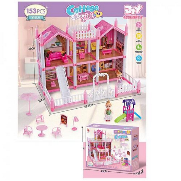 Будиночок DSJ588-24 (24шт) 48,5-30-в35см, 2 поверхи, меблі, лялька, 153 деталі, в кор-ці, 33-28-7,5с (шт.)