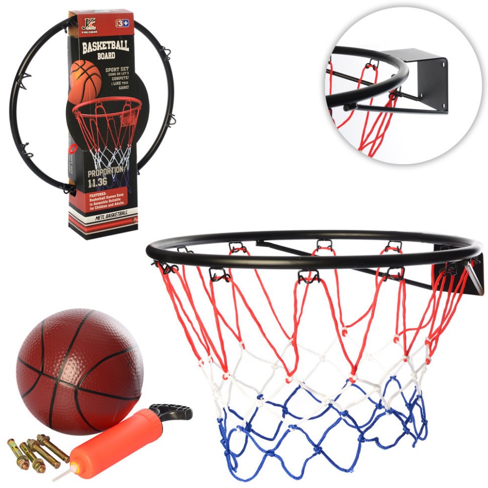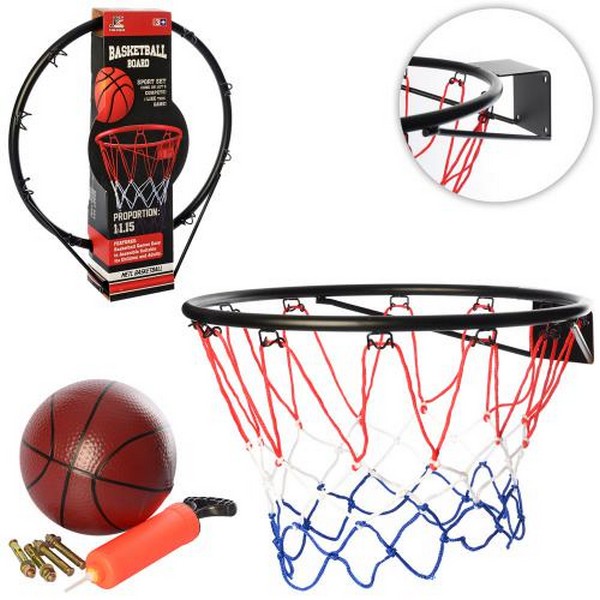 Баскетбольне кільце MR 0168 (8шт) 46см(метал), сітка,м'яч,насос,кріплення,в кор,46-53-11см (шт.)