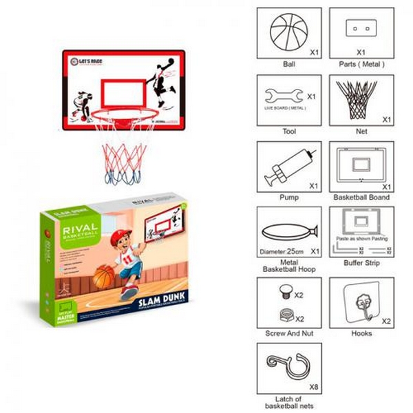 Баскетбольне кільце MR 0169 (12шт) 39см(метал)сітка,м'яч, насос, кріплення, в кор,39-45-9см (шт.)