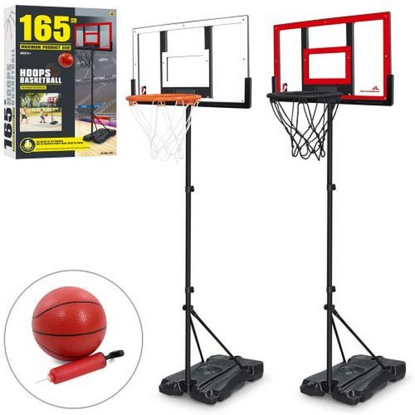 Баскетбольне кільце MR 0825 (24шт) на стійці110см,щит пласт,кільце,сітка,м'яч,насос, кор,26-37-6,5см (шт.)