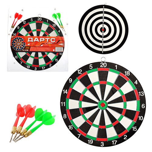 Дартс MR 1334 (36шт) магнітний, 20,5см, двосторонній, дротики 3шт, на листі, 26-26-3см (шт.)