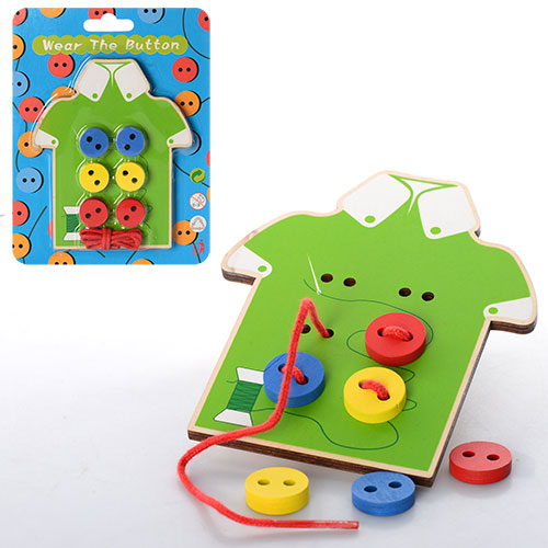 Дерев'яна іграшка Шнурівка MD 0905 (200шт) гудзики 6шт, на листі, 14-18-1см (шт.)