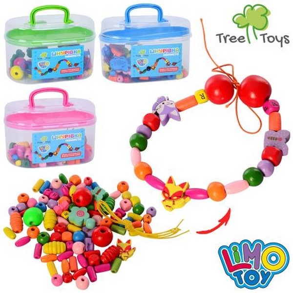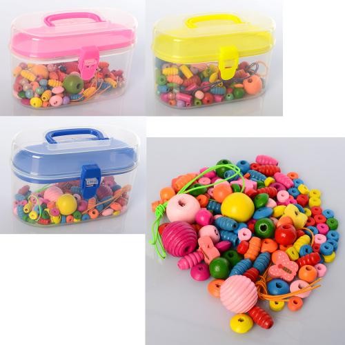 Дерев'яна іграшка Шнурівка MD 2200 (50шт) 3 кольори, у валізі, 12-7,5-7см (шт.)