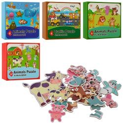 Дерев'яна іграшка Пазли MD 2558 (40шт) 4 види (транспорт/тварини), у кор-ці, 20-20-4см (шт.)