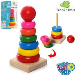 Дерев'яна іграшка Пірамідка MD 1712 (100шт) кільця 7шт, в кор-ці, 7-14-7см (шт.)