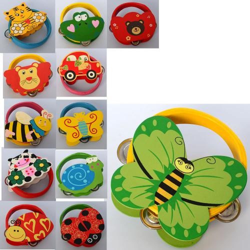 Дерев'яна іграшка Бубен MD 2477 (50шт) мікс видів (тварина, транспорт, комаха), в кульку, 14-14-4см (шт.)