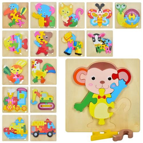 Дерев'яна іграшка Пазли MD 1773 (100шт) 16 видів (транспорт, тварини), у кульку, 15-15-1см (шт.)