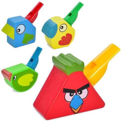 Дерев'яна іграшка Свисток MD 1943 (50шт) фігурки-пташки, підставка, 4 види, в коробці, 12-9-3см (шт.)