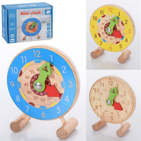 Дерев'яна іграшка Годинник MD 2887 (50шт) 10см, на ніжках, 3 види, в коробці, 14,5-11,5-3см (шт.)