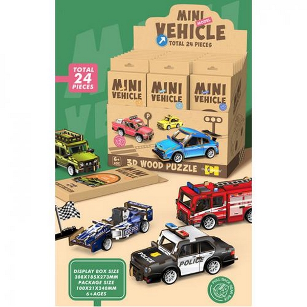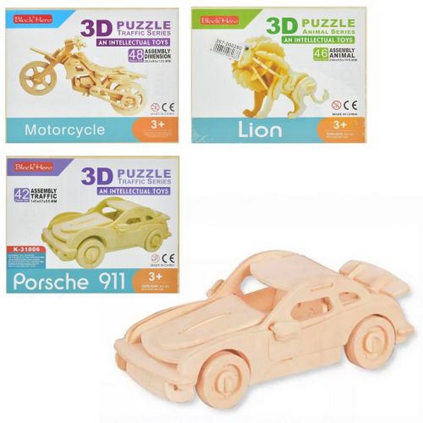 Дерев'яна іграшка Пазли 68031 (96шт) 3D, машина, від 19дет, інерц, гумові колеса, пилка, в кор-ці, 2 (шт.)