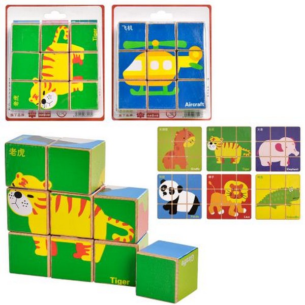 Дерев'яна іграшка Кубики MD 1871 (50шт) пазли,2 виду, в слюді, 13-15-3,5см (шт.)