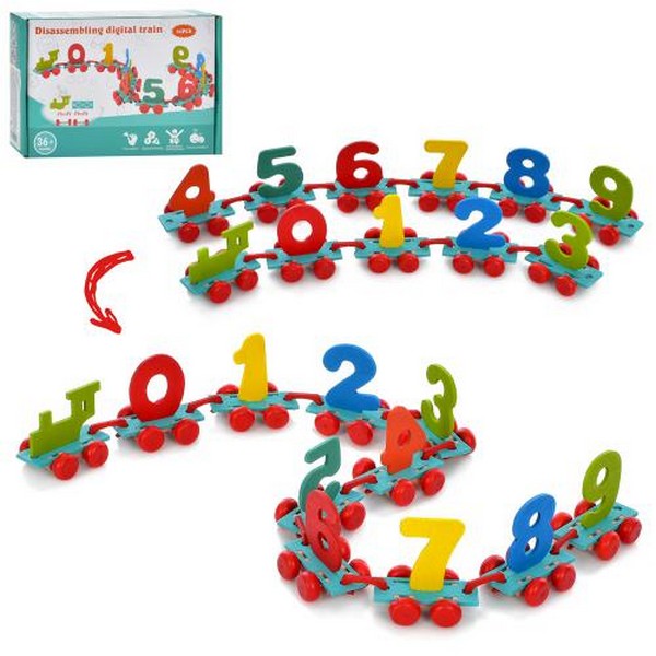 Дерев'яна іграшка Паровозик MD 1940 (50шт) 10вагонів, цифри, в кор-ці, 20-13,5-3,5см (шт.)