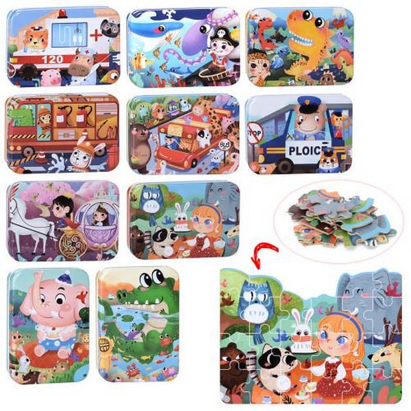 Дерев'яна іграшка Пазли MD 1882 (60шт) 60 дет., мікс видів, пенал (метал), 13-8-3см (шт.)