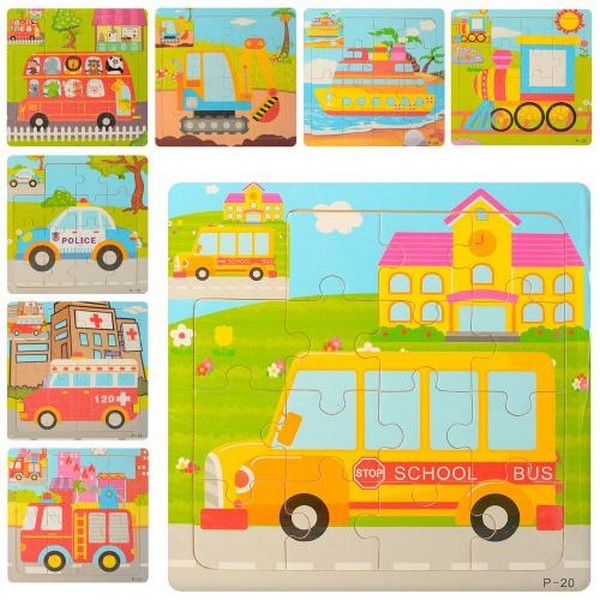 Дерев'яна іграшка Пазли K-21801-2-3-4-6-9 (60шт)транспорт,від24до32дет,4вид,у кульк,21-17-0,5 (шт.)