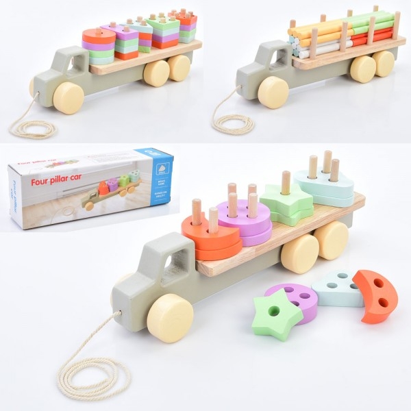 Дерев'яна іграшка Геометрика MD 0837 (21шт) трейлер, 29,5см, каталка(на шнурі), 3 види (1вид-палички (шт.)