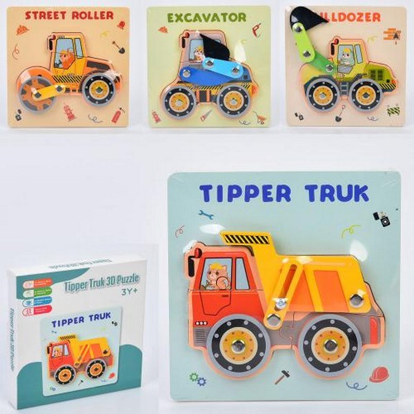 Дерев'яна іграшка пазли MD 0871 (60шт) будтехніка, 4 види, в кор-ці, 15-15-2,5см (шт.)