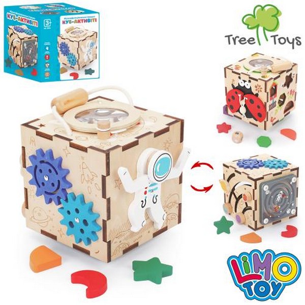 Дерев'яна іграшка Бізікуб MD 0894 (20шт) куб, 15,5-15,5-13,5см, сортер, шестерні, лабіринт, рухливі (шт.)