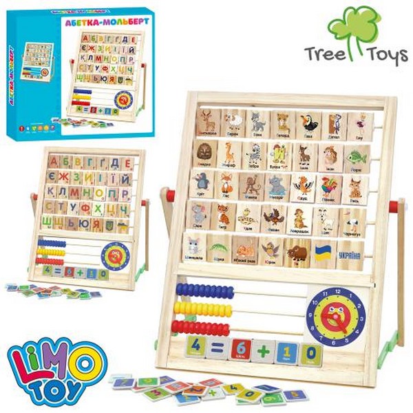 Дерев'яна іграшка Мольберт MD 0890 (24шт) Абетка-мольберт, 30,5-16-в33см, УКР абетка, рахівниця, год (шт.)
