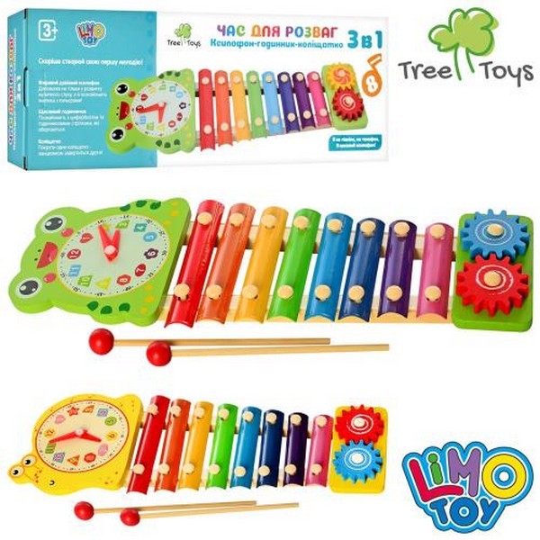 Дерев'яна іграшка Ксилофон MD 2170 (50шт) 8 тонів, годинник, шестерінки, палочки 2 шт., кор., 39-13, (шт.)