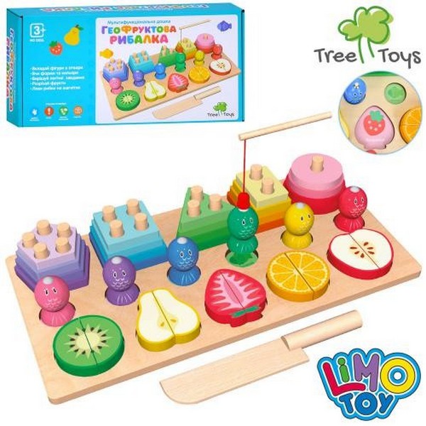 Дерев'яна іграшка багатофункціональна дошка MD 0856 (18шт) ігрове поле 30-15,5см, геометрика, фрукти (шт.)