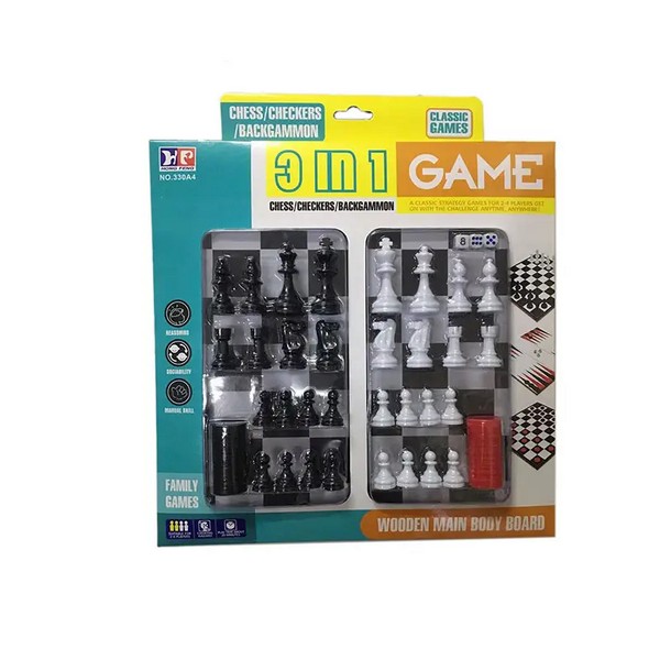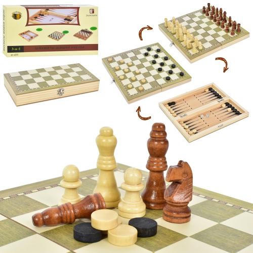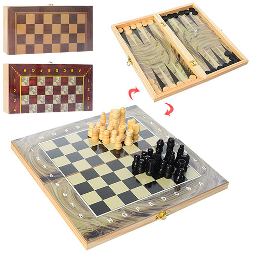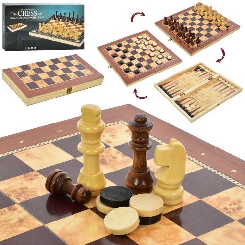 Шахи 28ACD (60шт) дерев, 3в1 (шашки, нарди), 3 кольори, у кульку, 27,5-14-3,5см (шт.)