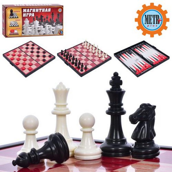 Шахи 3831 (96шт) на магнітах, 3 в 1 (шашки, шахи, нарди), в кор-ці, 20,5-11-3см (шт.)