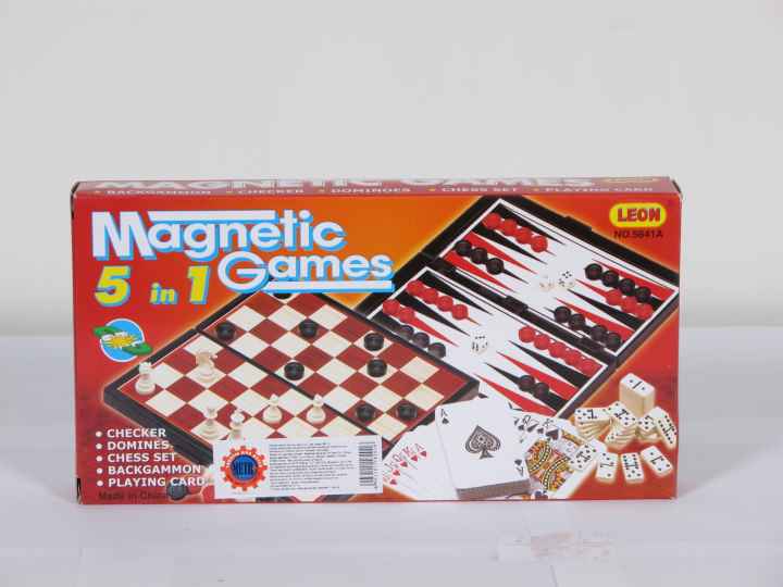 Шахи 9841 А (48шт) магнітні, 5в1 (нарди, шашки, доміно, карти), в коробці, 25-13-3,5см (шт.)