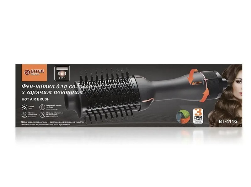 Разместить в 1 или 2 колонкиФен-щітка для волосся 3 в 1 1200Вт BITEK BT-411G (20) 3566 (шт.)