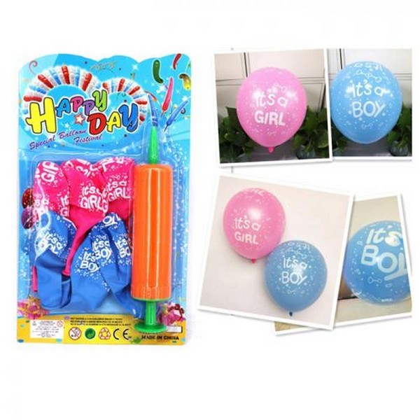 Повітряні кульки MK 5478 (100шт) It's a girl/It's a boy, 6 шт, насос, на листі, 17-28,5-4,5см (шт.)
