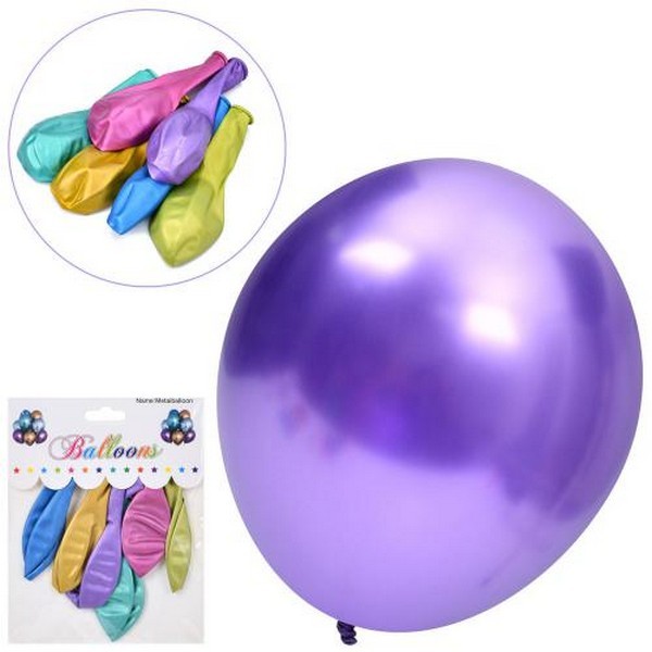Повітряні кульки MK 5481 (100шт) 12 дюймів, набір 6шт, 6 кольорів, металік, у пакеті, 15-19-0,5см (шт.)