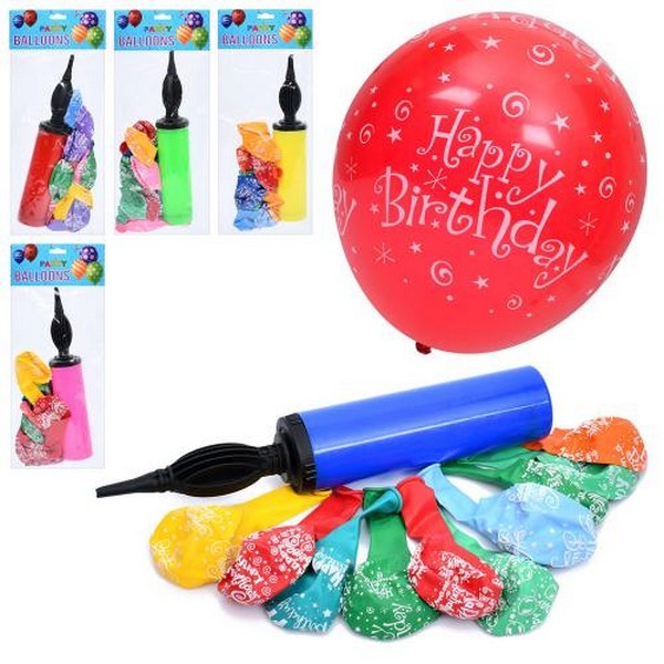 Повітряні кульки MK 5482 (50шт) 12 дюймів, Happy Birthday, набір 10шт/7кольорів, насос 27см, мікс ко (шт.)
