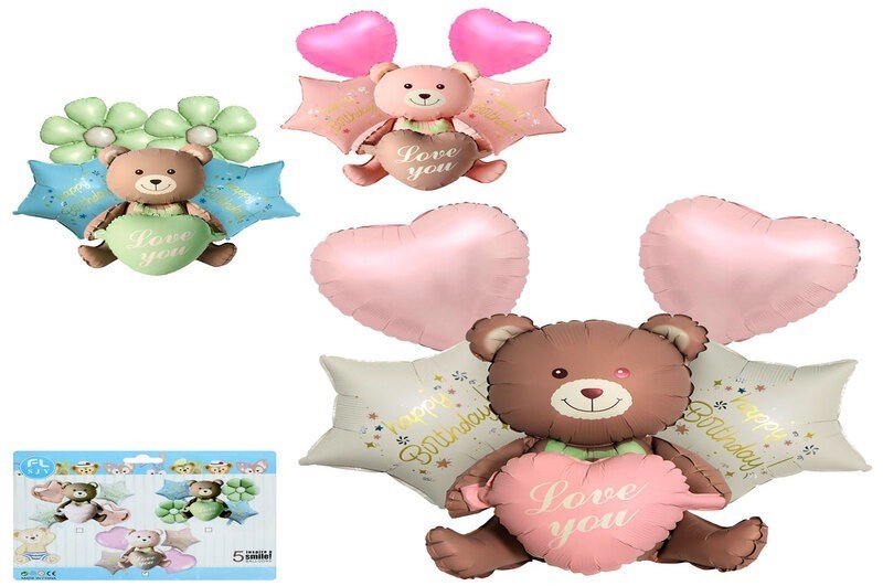 Повiтрянi кульки MK 5648 (50шт) набір 5шт (ведмедик 67см Love you, зірка 43см 2шт Happy Birthday, се (шт.)