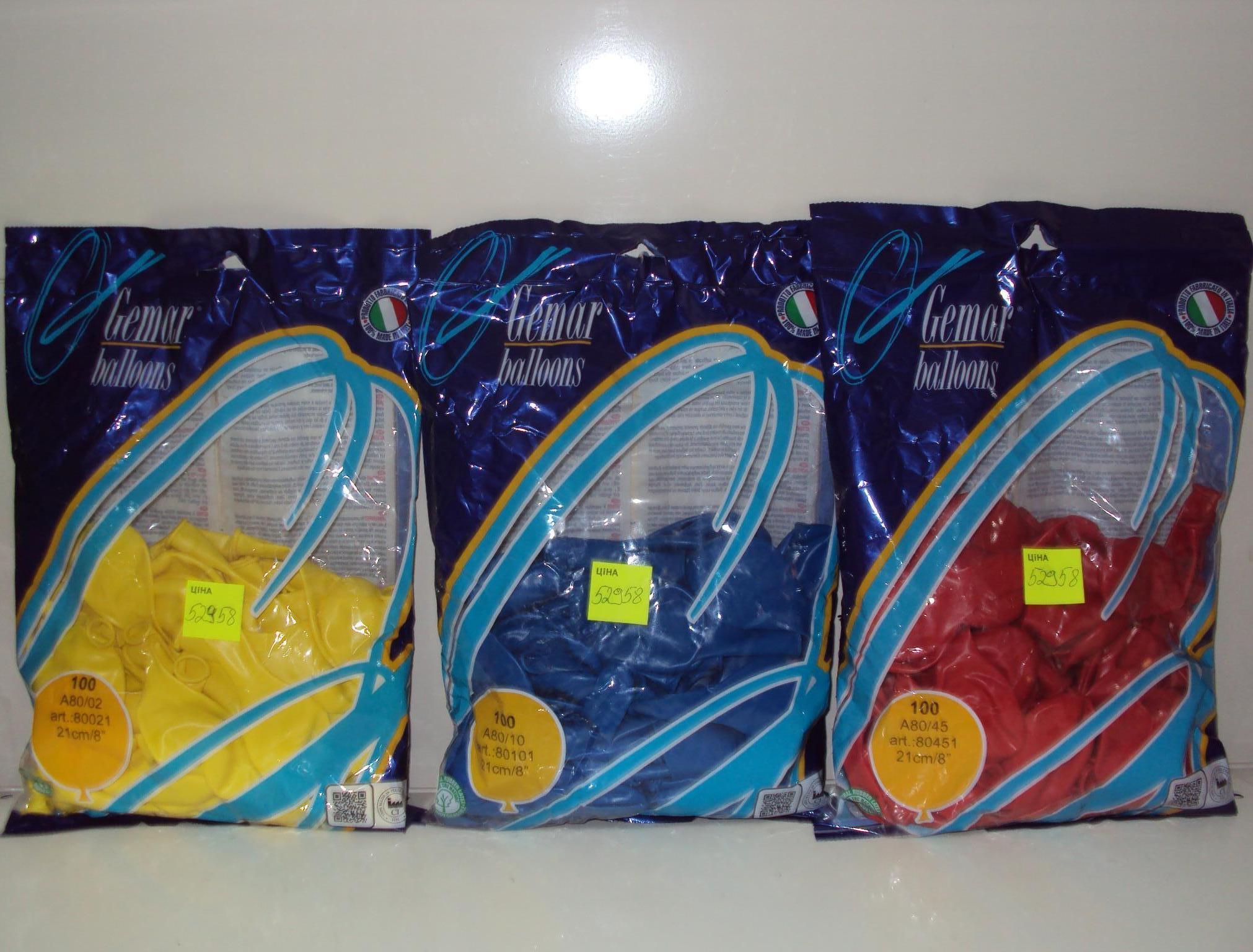 Повітряні кулі Асорті ТМ Gemar упаковка 100 шт 12 арт.969 (28-30 см) (шт.)